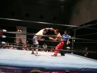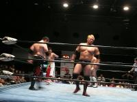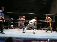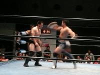 梶・HIROKI共にキレあって動き良い。連続でローリングセントーンアタック(でいいのか?)、ダイビング・ボディプレスと放つ。稲松もサブローハンマーなど得意技披露。