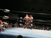 関根・橋本を中心にバコンバコンと凄まじい音を響かせ打撃戦。至近距離で見ると改めてプロレスは非日常の世界だと思い知らされる。普段の生活であんな音は聞かんです(笑)。