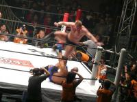 、これはかわされるも、そのあとにジャーマンで投げきってみせる。