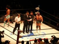 これ、たぶん、メヒコのタイトルマッチでは必ず行われる、記念撮影だと思ってずっと待ってたんだよw