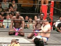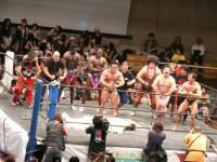 試合後、東郷のペディグリーを食らいそうになったメガネ(コミッショナー代行)が失禁。