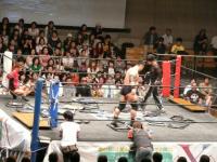 画像はありませんが、MIKAMIの放った場外への雪崩式スクールボーイはハードコア史上に残る危険技だった。