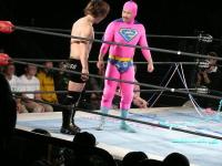 この日は、因縁浅からぬ双子のナチュラルヒール・佐藤兄弟と対戦。「宇宙戦争」が久々に東京で行われると聞き、私としては居ても立ってもいられず、台風の中、新宿へと足を運んだ。