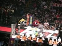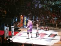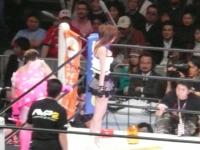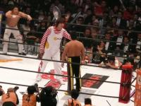 TVではカットでしたが、レーザビターンは何度か不発。後で高田総統がマイクでばらすのだが、本当は「LOVE&ハッスル」の盾が爆発する予定だったそうで(興行中にばらすってのも凄いな)。微妙な間ができてしまったのは残念。