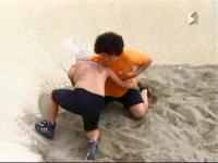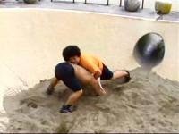 上四方で押さえ込む坂井だが・・・すり鉢の傾斜がじゃまで完全に体を返せない!