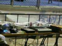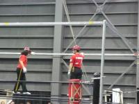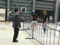 もうすぐスタート。イスがすべて撤去され金網搬入。
