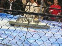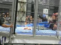 遅れましたが簡単に結果だけ。試合開始8分後に天井に設置されたガラスが鉄球で割られるルール。