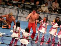 世界タッグは、ももいろクローバーZが出てきて小芝居始めるわ、ムタは存在感抜群だし、KENSOはビチッとテンション高いし、勝った「AAA(トリプレ ア’)」のダーククエルボはわけわかんないし・・・